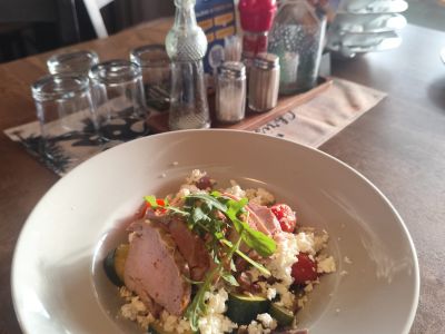 Míchaný zeleninový salát s kuřecími kousky, dresing 137