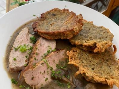 150g Trhaná vepřová plec, červené zelí, bramborový knedlík 1, 3, 9, 10