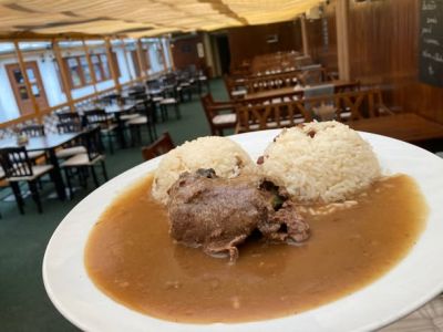 150g Hovězí pečeně, svíčková na smetaně, houskový knedlík, brusinkový terč…159 A-1, 3, 7, 9, 10