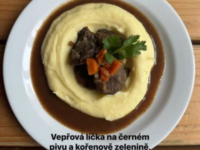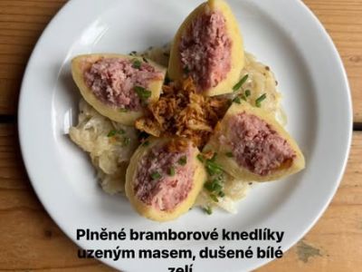 150g Pomalu pečená krkovice, špenát, domácí žemlový knedlík…