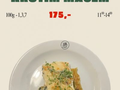 Smetanovo-špenátové lasagne zapečené se s ementálem a mozzarellou, salátek (veg),