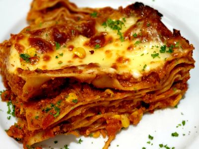 PASTA MĚSÍCE: Čerstvé rigatoni s ragů z mletého hovězího masa, kořenové zeleniny a červeného vína s tymiánem a sýrem Gr. Padano [1, 7, 12]