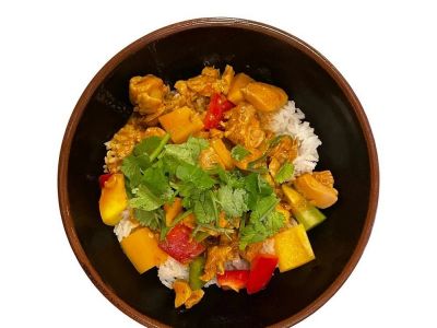 Zeleninové thajské kari s tofu a jasmínovou rýží