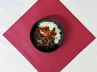 150g Marinovaná vepřová krkovička, americké brambory, obloha 1, 6)