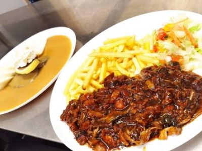 150g KUŘECÍ STEAK s pikantní asijskou omáčkou a čínskou rýží / hranolky 6