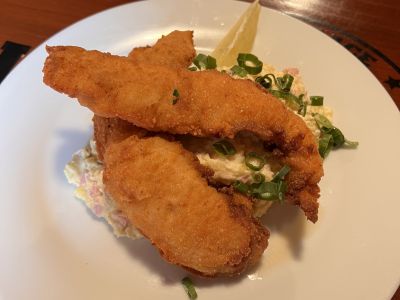 Smažené vepřové řízečky, bramborová kaše, kyselá okurka