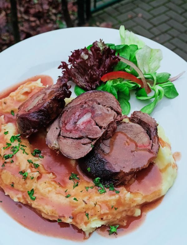 Pečené kachní stehno, kys. zelí, houskové knedlíky
