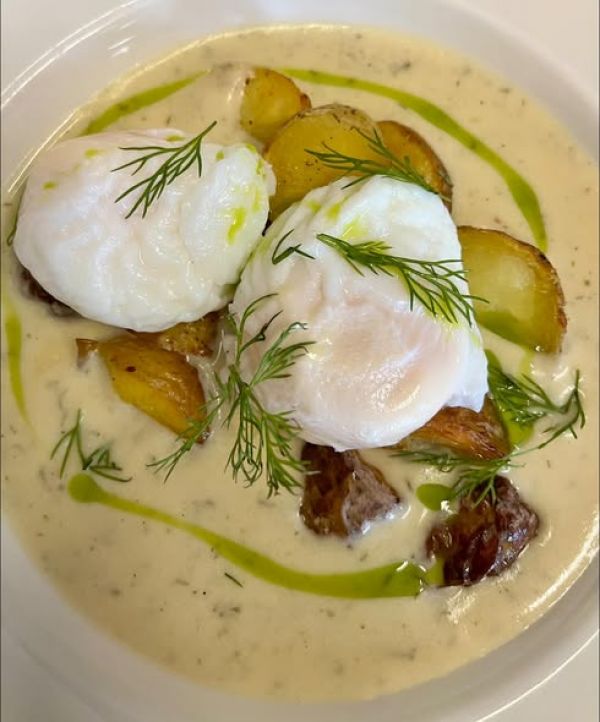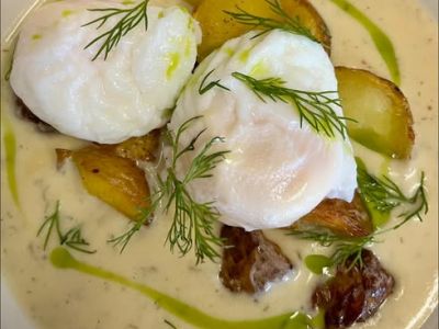 Hovězí loupaná plec s hříbkovým velouté, houskový knedlík
