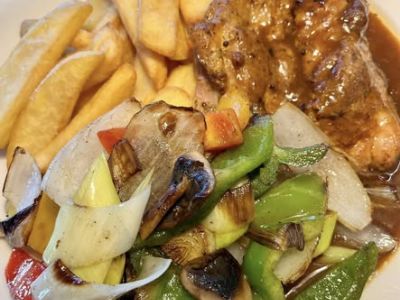 150 Vepřová játra po mlynářsku, smažené hranolky
