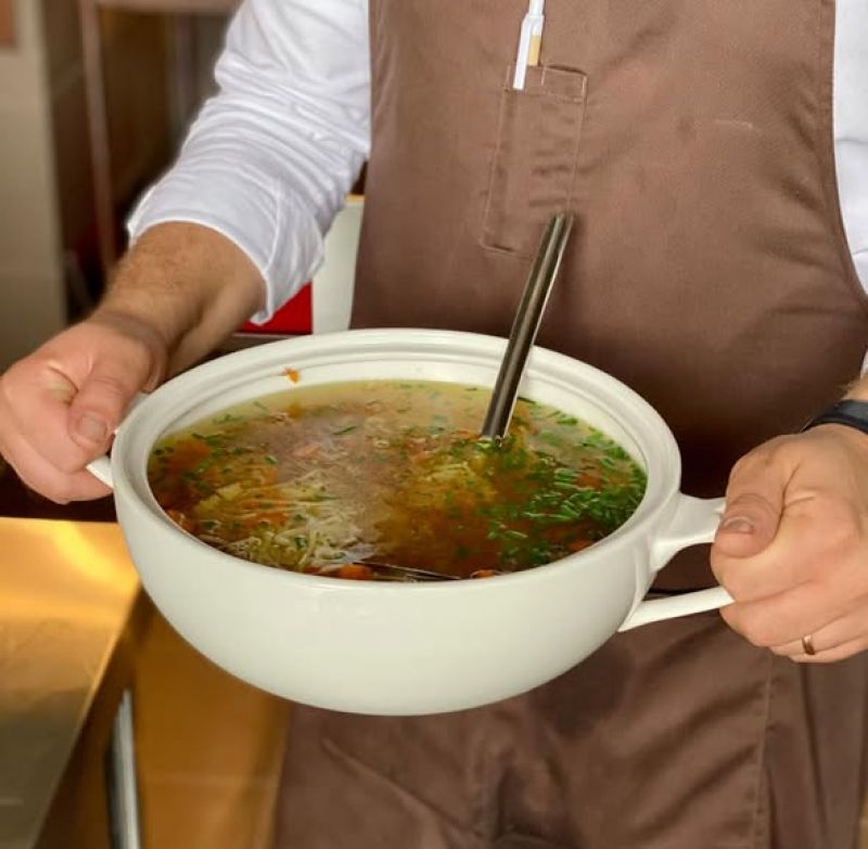 Hovězí vývar s játrovými knedlíčky a nudlemi