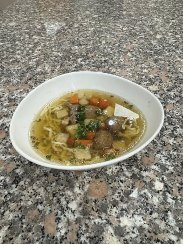 Hovězí vývar s masem, zeleninou a nudlemi