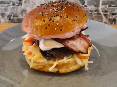 120 g Pečený karbanátek, bramborová kaše s medvědím česnekem