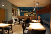 Kuřecí nudličky v omáčce z modrého sýra a smetanou, rýže / hranolky