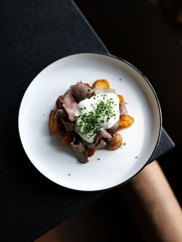 150g Trhané hovězí maso, smažené hranolky, tatarská omáčka A1, 3, 7