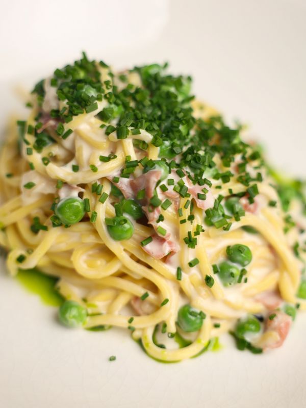 2. SPAGHETTI CARBONARA - kvalitní špagety s restovanou italskou pancettou, vaječnými pasterizovanými žloutky, parmezánem Grana Padano a čerstvě mletým pepřem