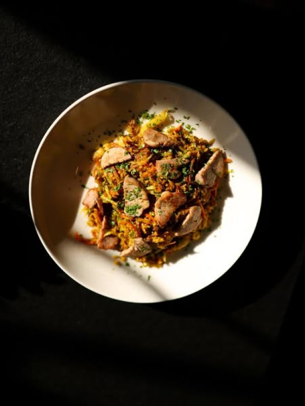 2 TRHANÉ HOVĚZÍ HRUDÍ V PIKANTNÍ BBQ OMÁČCE, na salátu z batátů a grilované sezonní zeleniny 10