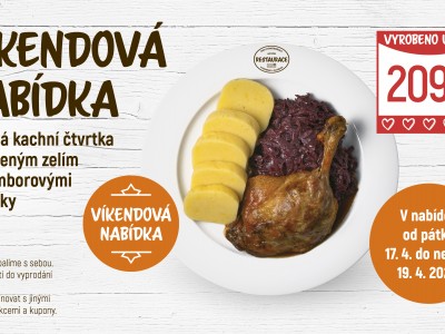 150g Pečené kachní stehno, červené zelí, bramborový knedlík A 1, 3, 7180 Kč