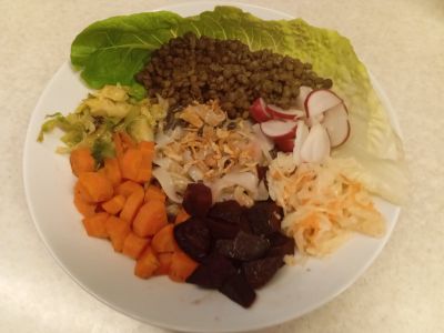Máslové fazole s rajčaty a kadeřávkem, s kešu bylinkovým dresinkem a naší fokáčou (vegan) 18