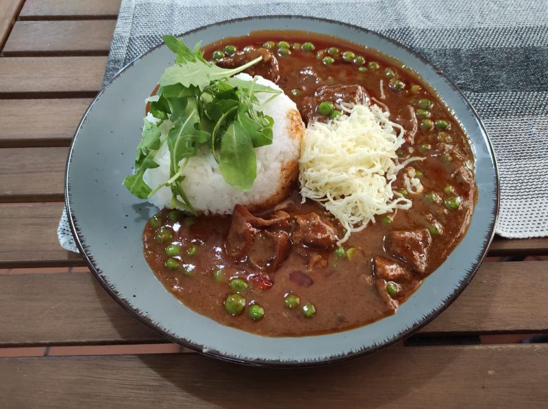 fit menu: Jemně pikantní kari z červené čočky, tmavý rohlík, salát