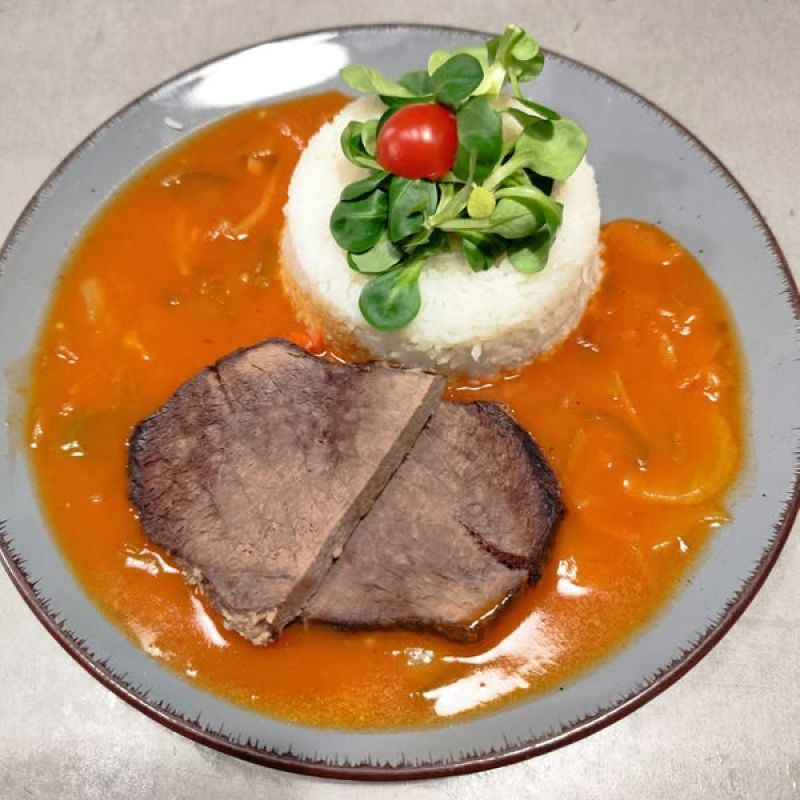 Vařené hovězí s rajskou omáčkou, houskový knedlík