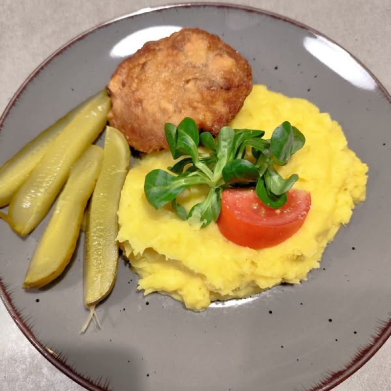 150 g Vepřový řízek z kotlety, bramborová kaše s máslem