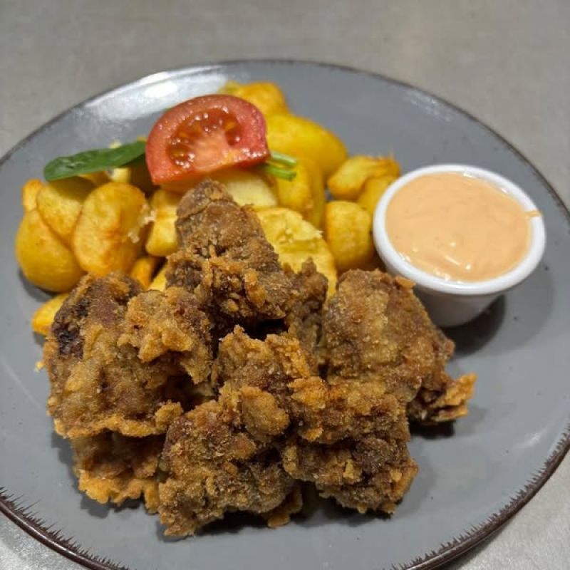 130g Stripsy z kuřecích prsíček, bramborové hranolky, domácí ďábelská omáčka