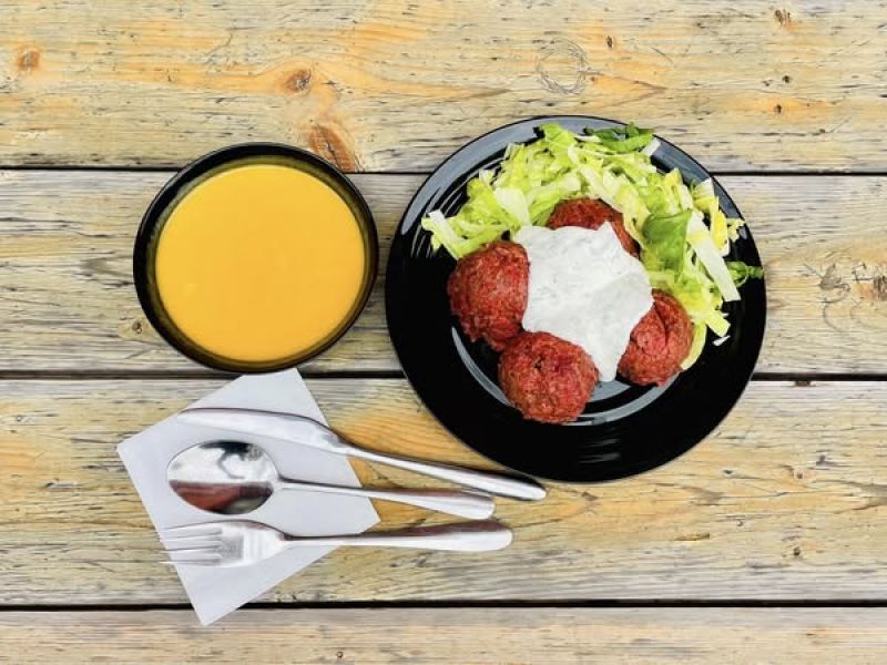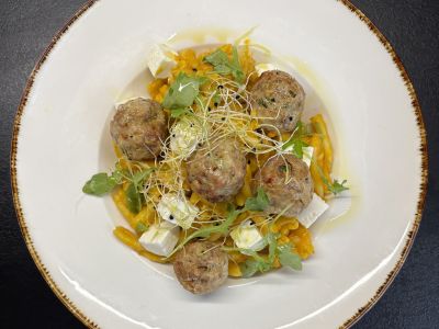 Masové kuličky, rajská omáčka, těstoviny farfalle 137910