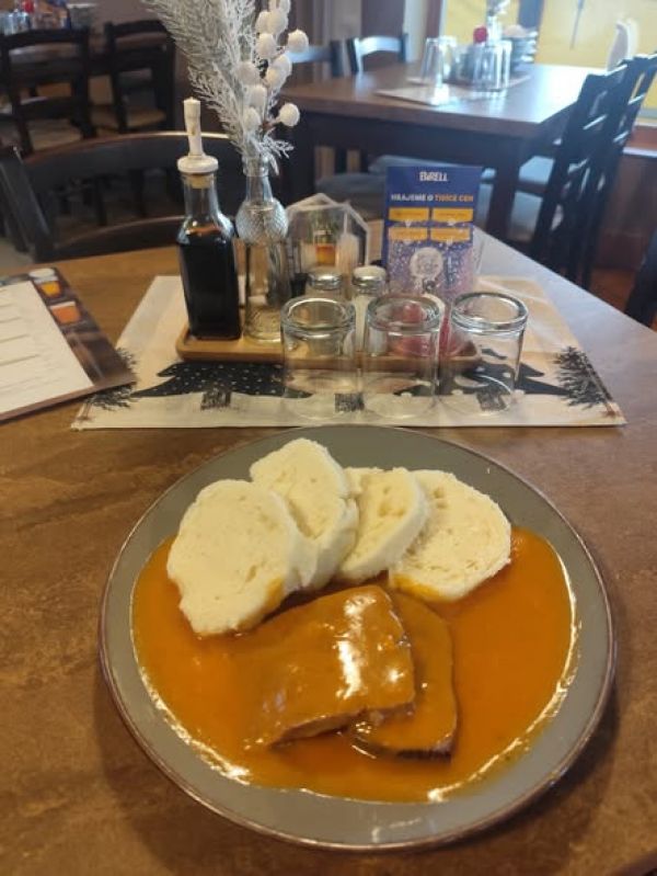 Svíčková na smetaně, brusinkový terč, houskový knedlík