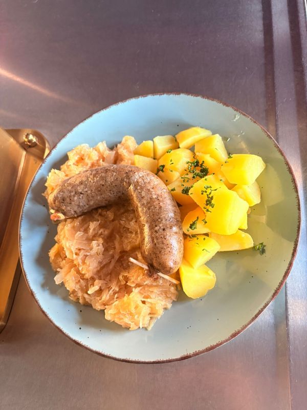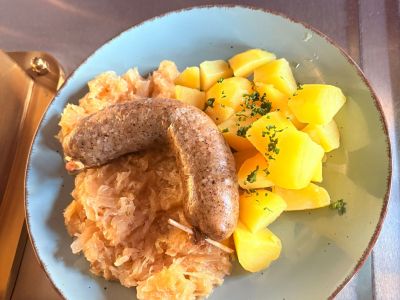 Jitrnicový prejt, kysané zelí, brambory vařené