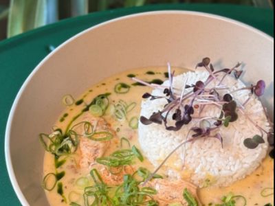 Kari bulgur s tyčinkami surimi a zeleninou, salát
