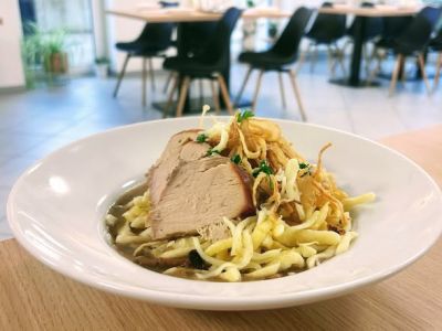 Kachní kaldoun se smetanou a vaječnými těstovinami
