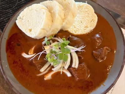 150 g Vepřový debrecínský guláš, houskové knedlíky