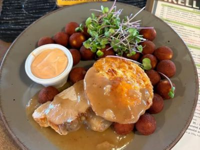 Camembert v listovém těstě se žampiony na pivě, salátek, domácí pečivo 219 - do vyprodání