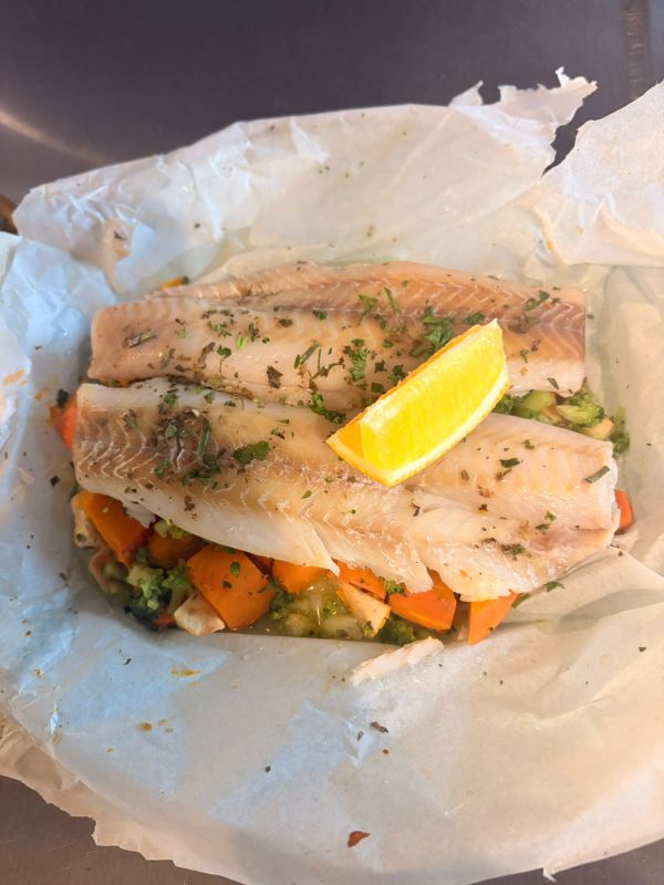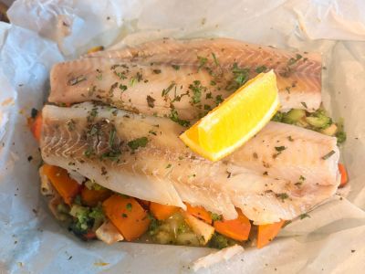 Rybí filé s omáčkou beurre blanc a teplou zeleninou A 4, 7, 9, 12
