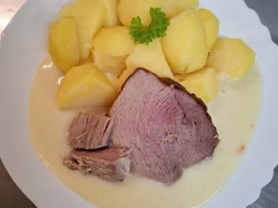 Sekaná svíčková, houskový knedlík