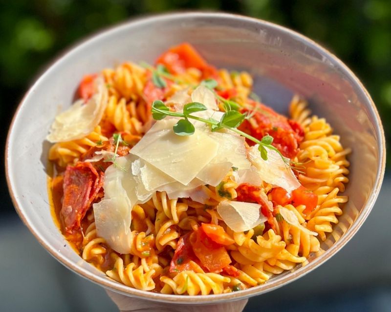 Kuře na paprice s těstovinami fusilli