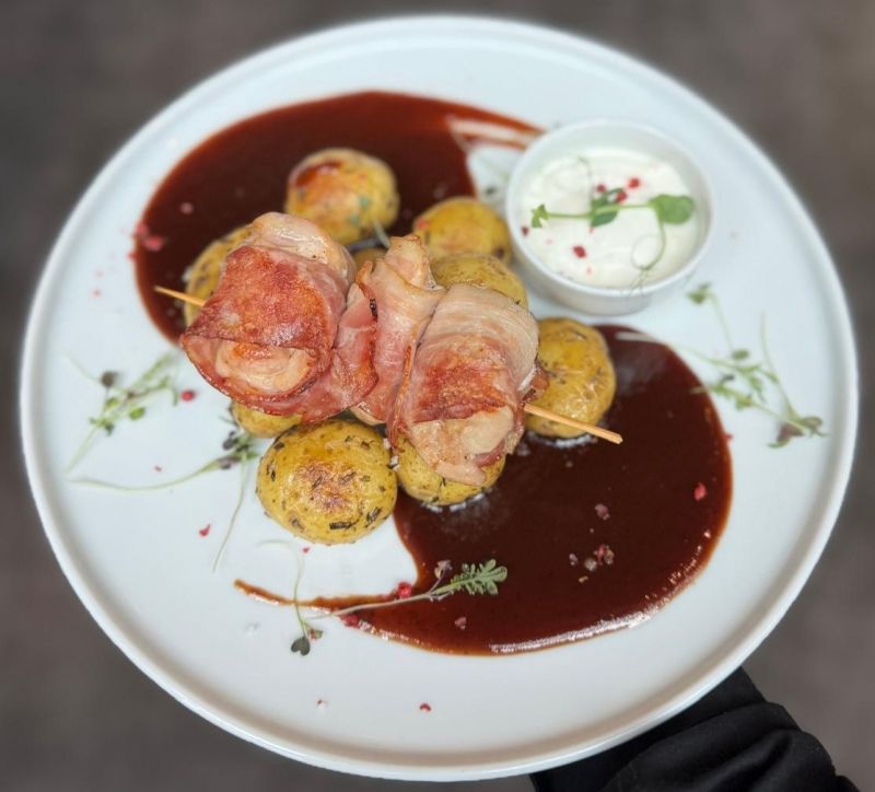 Prsíčko se třemi druhy sýrů, opékané brambory, tatarka 37