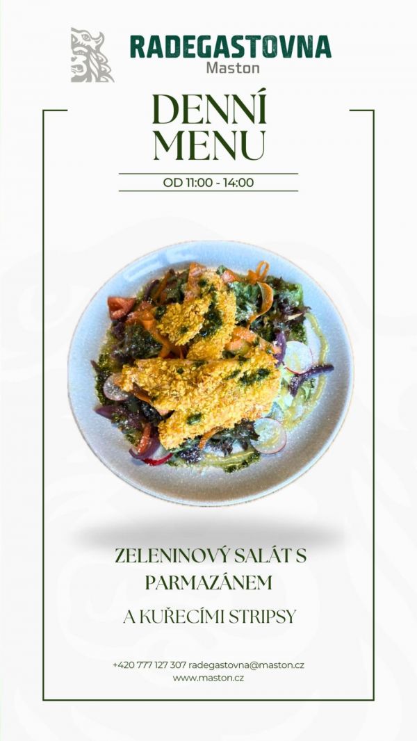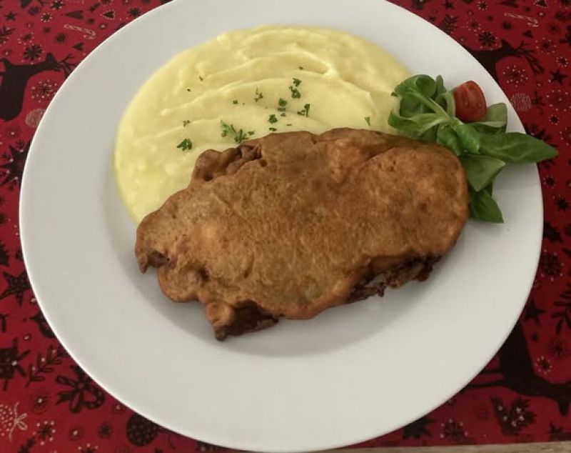 150g Soukenický řízek, bramborová kaše, hanácký salát (1, 3, 7, 9, 10)