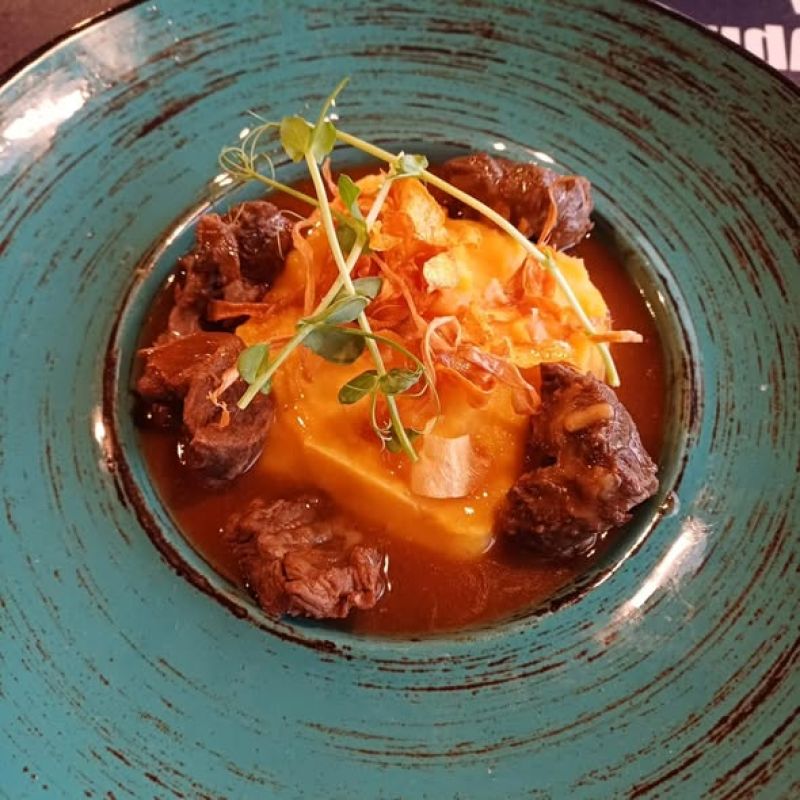 Krůtí kostky v nivové omáčce, opékaný brambor (* 1,7)