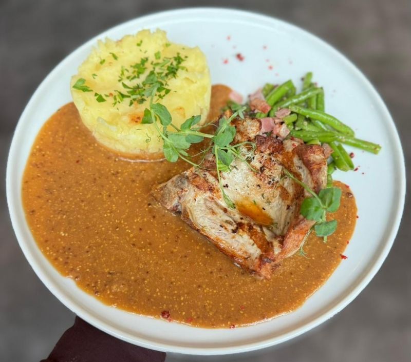 Kuřecí prso Supreme grilované fazolové lusky, omáčka z hrubozrnné hořčice, pečené grenaille