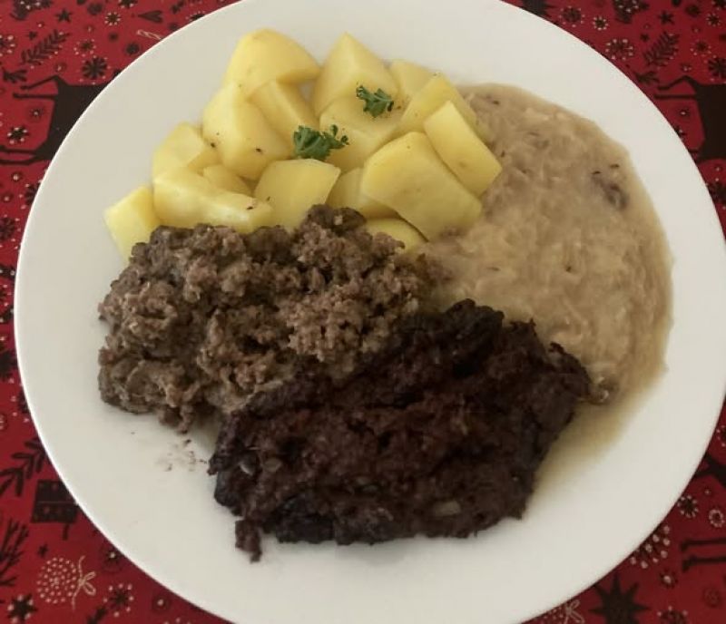 Babiččina sekaná se svíčkovou omáčkou, houskový knedlík