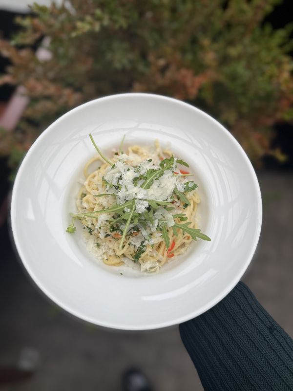 300 g Špagety s kuřecím masem se smetanou a bazalkou