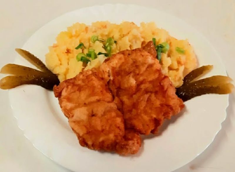 Kuřecí řízek XXL, bramborová kaše