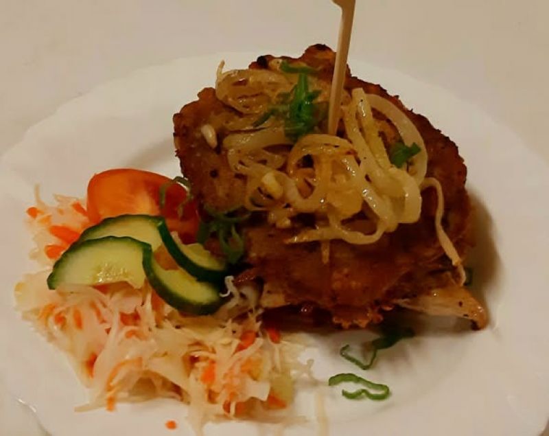 300g Kotlet na roštu, omáčka ze zeleného pepře, opékaný brambor 17