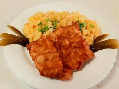 Smažený kuřecí řízek, bramborový salát