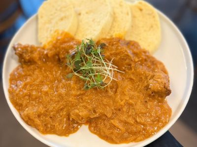Domácí hovězí guláš, houskový knedlík nebo chléb