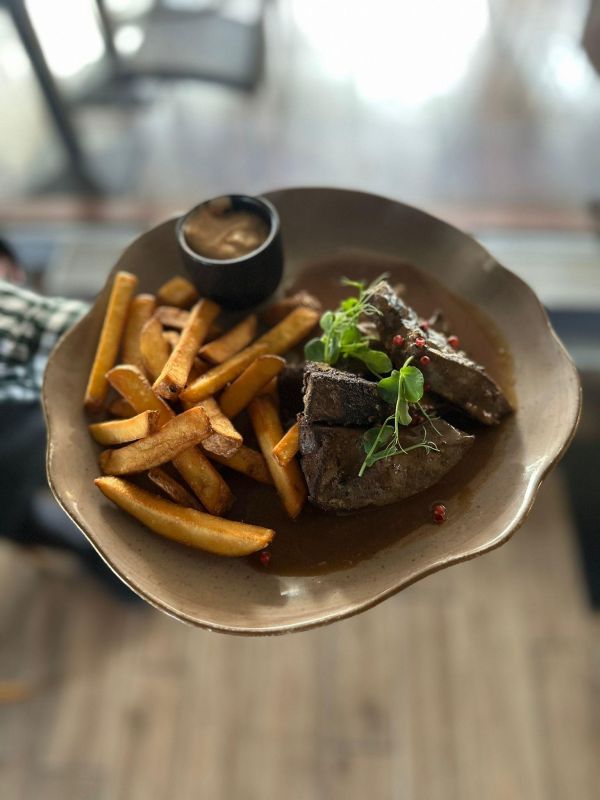 Smažená vepřová játra, hranolky, tatarka