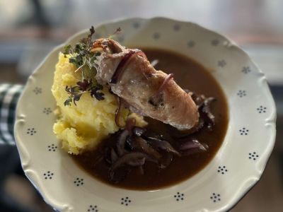 Hovězí líčka na portském víně, šťouchané brambory