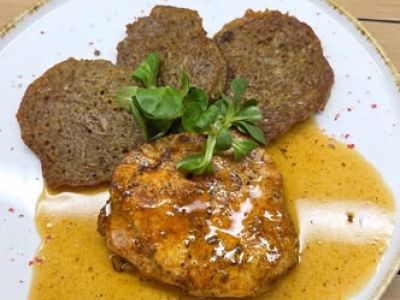 Kančí medailonky, houbová omáčka, placky 17