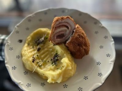 • Záhoracký závitek z kotletky, šťouchané brambory